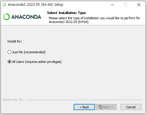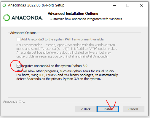Register Anaconda as my default Python 에 체크를 하면 Anaconda를 기본 Python으로 등록하게 된다.
