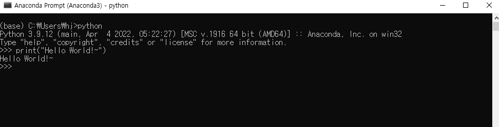 설치가 잘 되었는지 보려면 Anaconda Prompt를 열어서 python을 치면 된다.