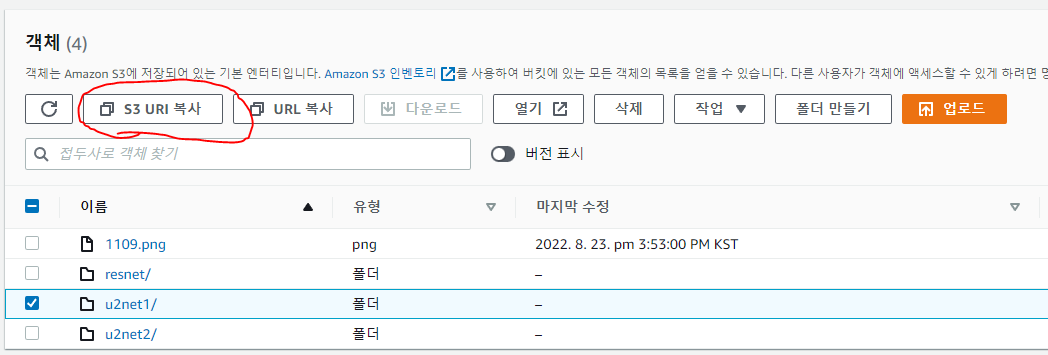 (S3 URL 넣는 위치에는 빨간 동그라미 친 버튼을 눌러서 그대로 붙여넣기 해주면 된다.)