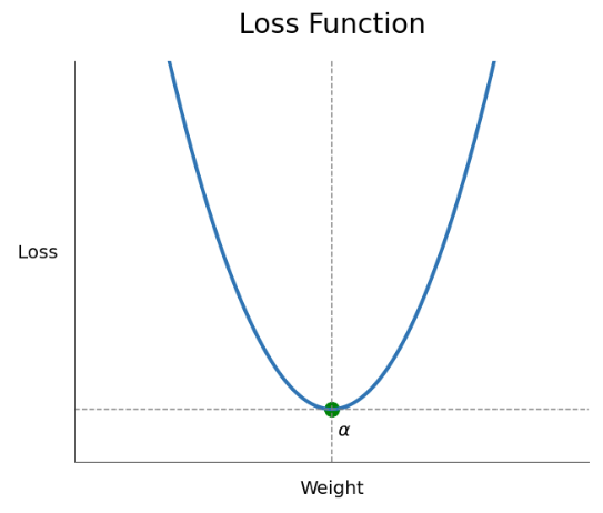 여기서 손실 함수가 최소 값을 가지는 하나의 해는 α(알파)가 될 것이다. 최적화는 저 손실함수가 최적의 해 인 α(알파)를 찾아 나가는 과정이다.