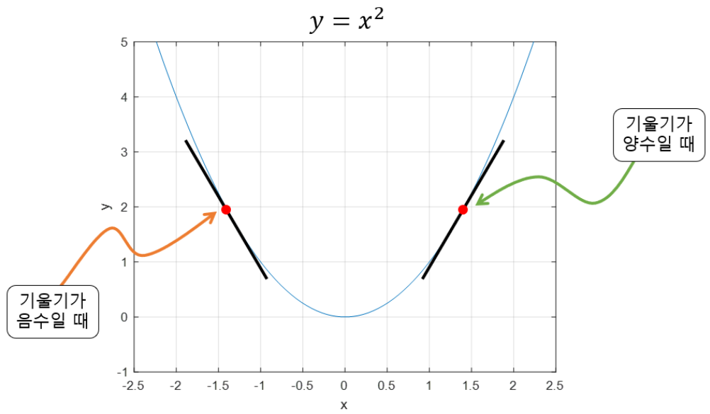 각 지점에서 gradient를 구하기 위해서는 각 점의 순간 변화량을 뜻하는 미분값을 알아야 한다.