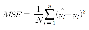 평균 제곱 오차(mean squared error)는 아래와 같이 오차 제곱의 합의 평균 형태이다.