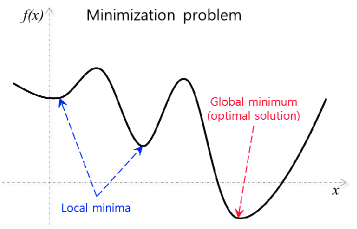 위 이미지와 같이 global maximum을 나 두고 local minima에 빠지는 경우가 많다. 이때 local minima에서 탈출하기 위한 방법으로 momantum이나 stocastic gradient descent와 같은 여러 방법이 존재한다 이는 다음에 새로 포스팅을 통해 추가로 알아보겠다.