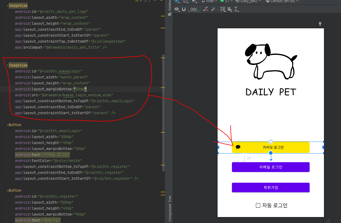 먼저 (문서> 유용한 참고 정보 > 디자인 가이드) 로 가서 카카오 버튼 이미지를 다운받아 줍시다.