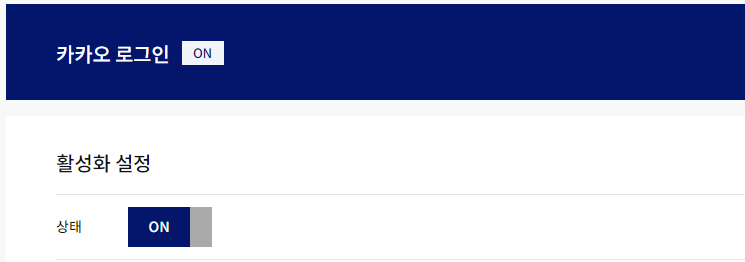 카카오 로그인 활성화 (내어플리케이션 -> 제품 설정 -> 카카오 로그인) 상태를 ON으로 변경하겠습니다.