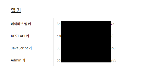 어플을 등록하면 아래와 같이 앱키를 획득하게 됩니다.